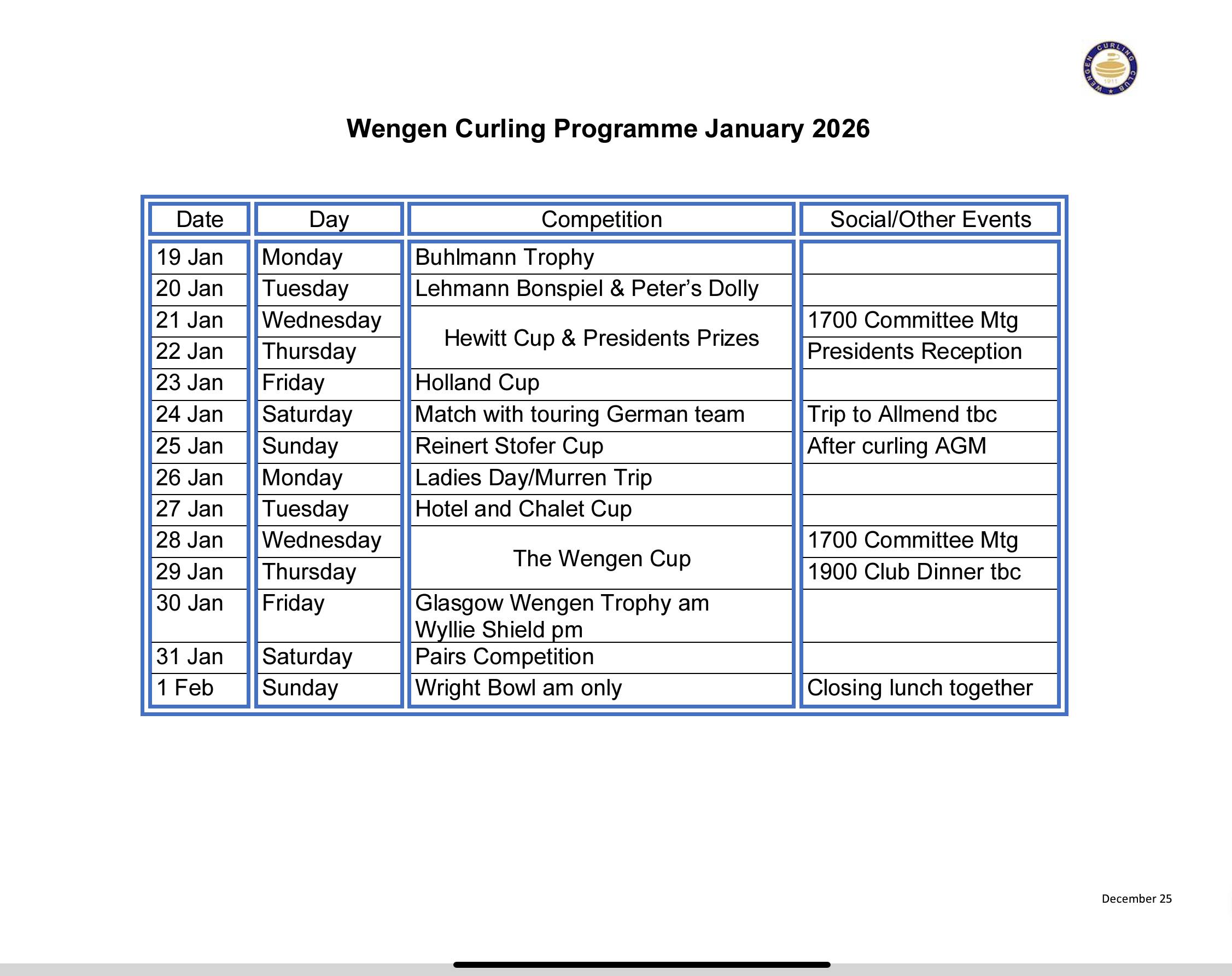 Welcome to our website where you will find information about the Wengen Curling Club